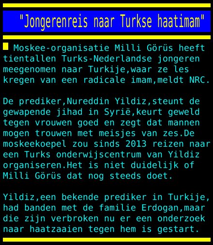 Mooie plaatjes van vakantiebestemmingen, een uitnodiging om te investeren in Turkije en uiteraard de mogelijkheid om je kind aan te geven als Turk zodat het straks als strijder van Erdogan Europa kan bestormen. Oh Nederland, wat ben je toch gul met je vrijheid. En het weggeven van de tweede nationaliteit aan mensen die trouw zijn aan vreemde mogendheden. Waar is Stef Blok als je ’m nodig hebt? Wanneer geeft hij toe dat we onze eigen vijanden voeden om onze vrijheid in te nemen? En hoe snel zal hij daar dan z'n excuses voor aanbieden? Speculatie – maar hoop doet leven.