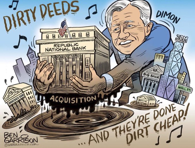 Zo ver het “goede” nieuws, want het is maar de vraag of de JP Morgans van deze wereld onbeperkt de regionale banken kunnen overnemen. Immers, de bijkomende verliezen voor aandeelhouders, obligatiehouders en het FDIC is nou niet bepaald een storm in een glas water. En intussen gebeurt er iets wat alle overheden zeiden nooit meer te willen: grote systeembanken die nog groter worden gemaakt (too big to save).